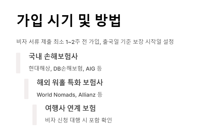 - 여행사 연계 보험 플랜 (비자 신청 대행 시 포함된 경우 있음)