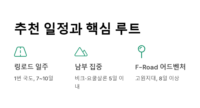 세부 일정 짜기 — ‘링 로드(1번 국도)’ vs ‘남부 집중’