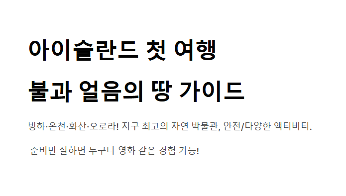 첫 아이슬란드 여행자도 당황하지 않고 일정·예산·장비를 완벽히 세팅할 수 있도록 돕는 것입니다.