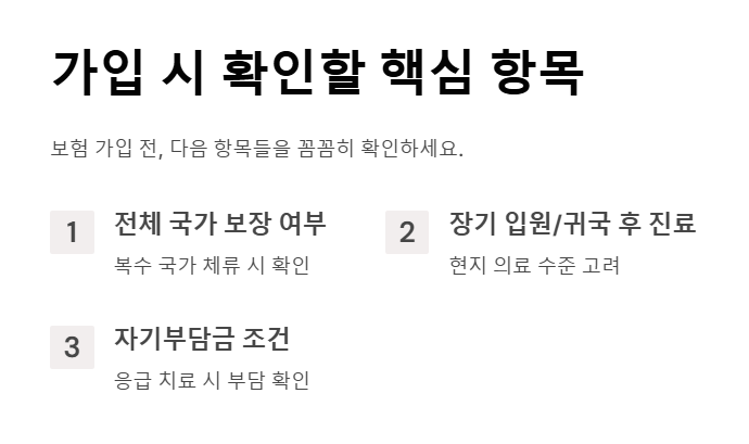 | 귀국 후 진료 | 일부 보험은 귀국 후 국내 치료 보장 포함 |