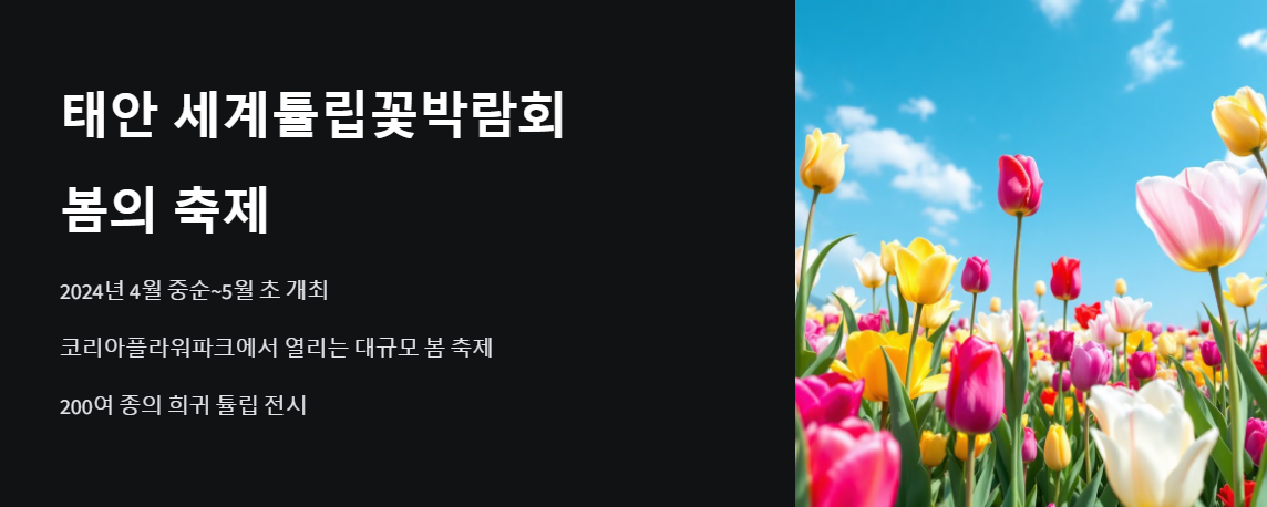 태안 세계튤립꽃박람회는 ‘꽃의 도시’로 잘 알려진 태안에서 열리는 대표 봄 축제입니다.