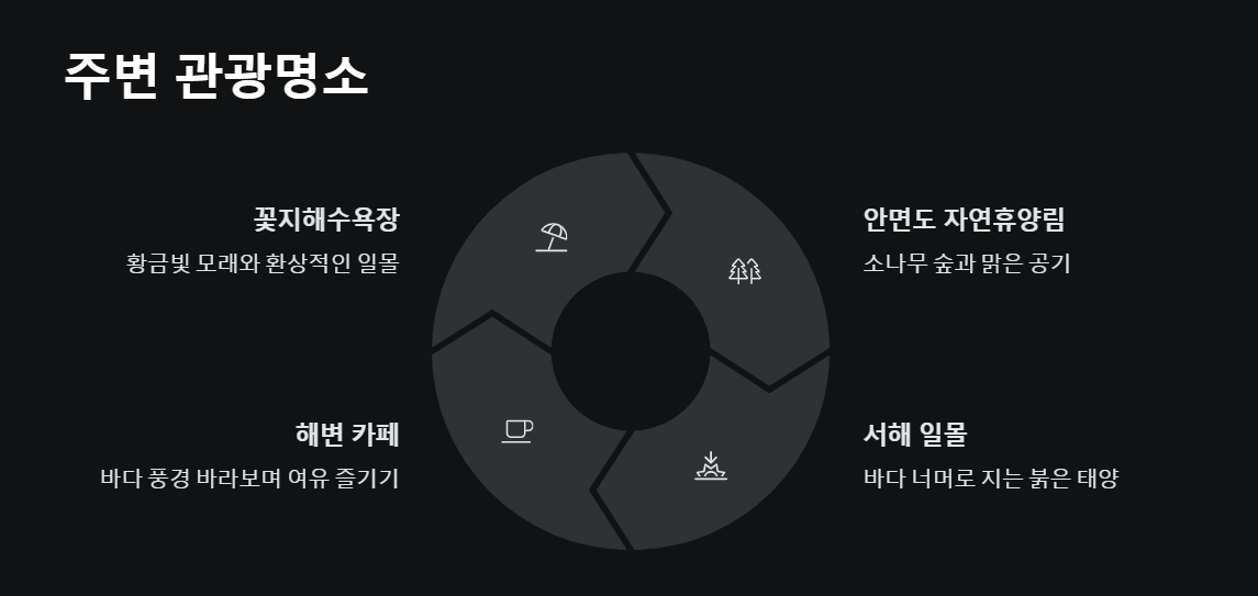 - 오전~오후: 안면도 자연휴양림, 꽃지해수욕장, 백사장항 등 인근 관광