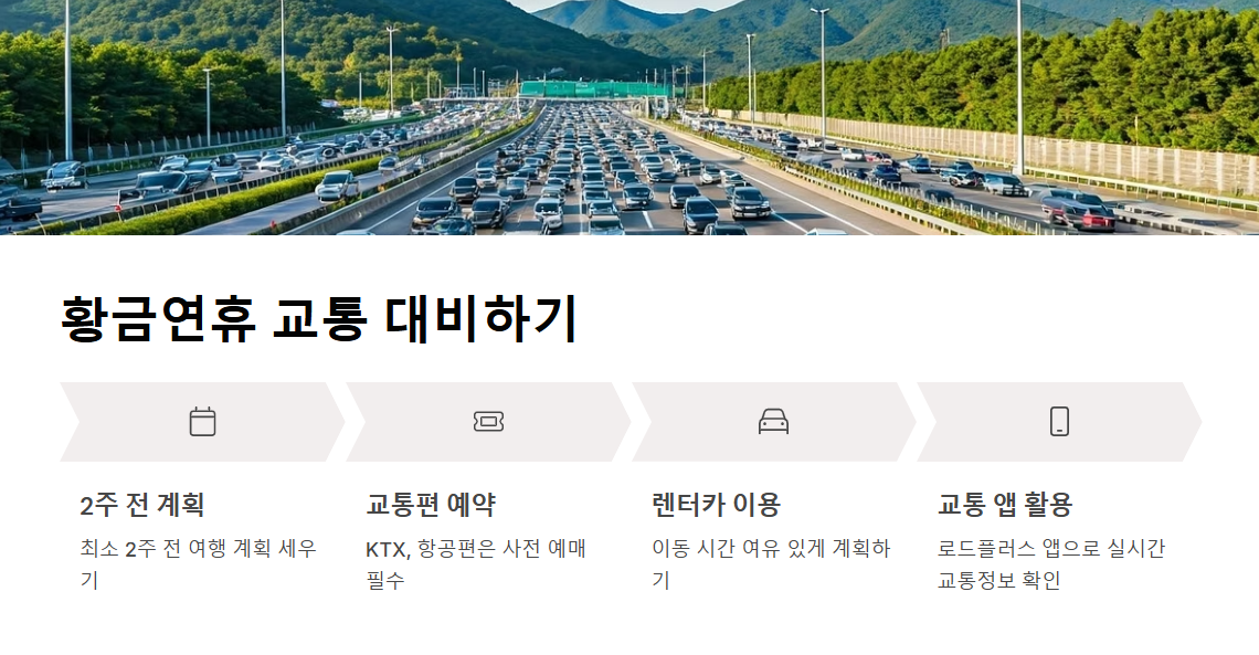 여행 계획은 최소 2주 전에 세우는 것이 좋으며, KTX나 항공편은 미리 예매하고, 대중교통보다는 렌터카 이용 시 이동 시간 여유를 충분히 확보해야 합니다.