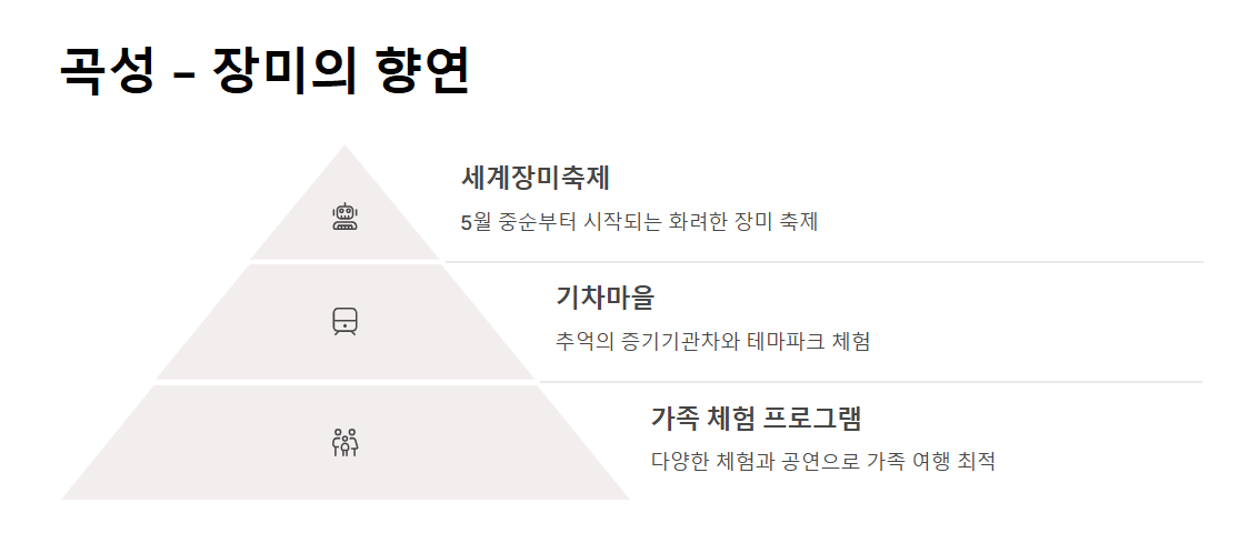 축제 기간 동안에는 장미를 주제로 한 다양한 체험 프로그램과 공연도 진행되니 가족 단위 여행객에게 안성맞춤입니다.